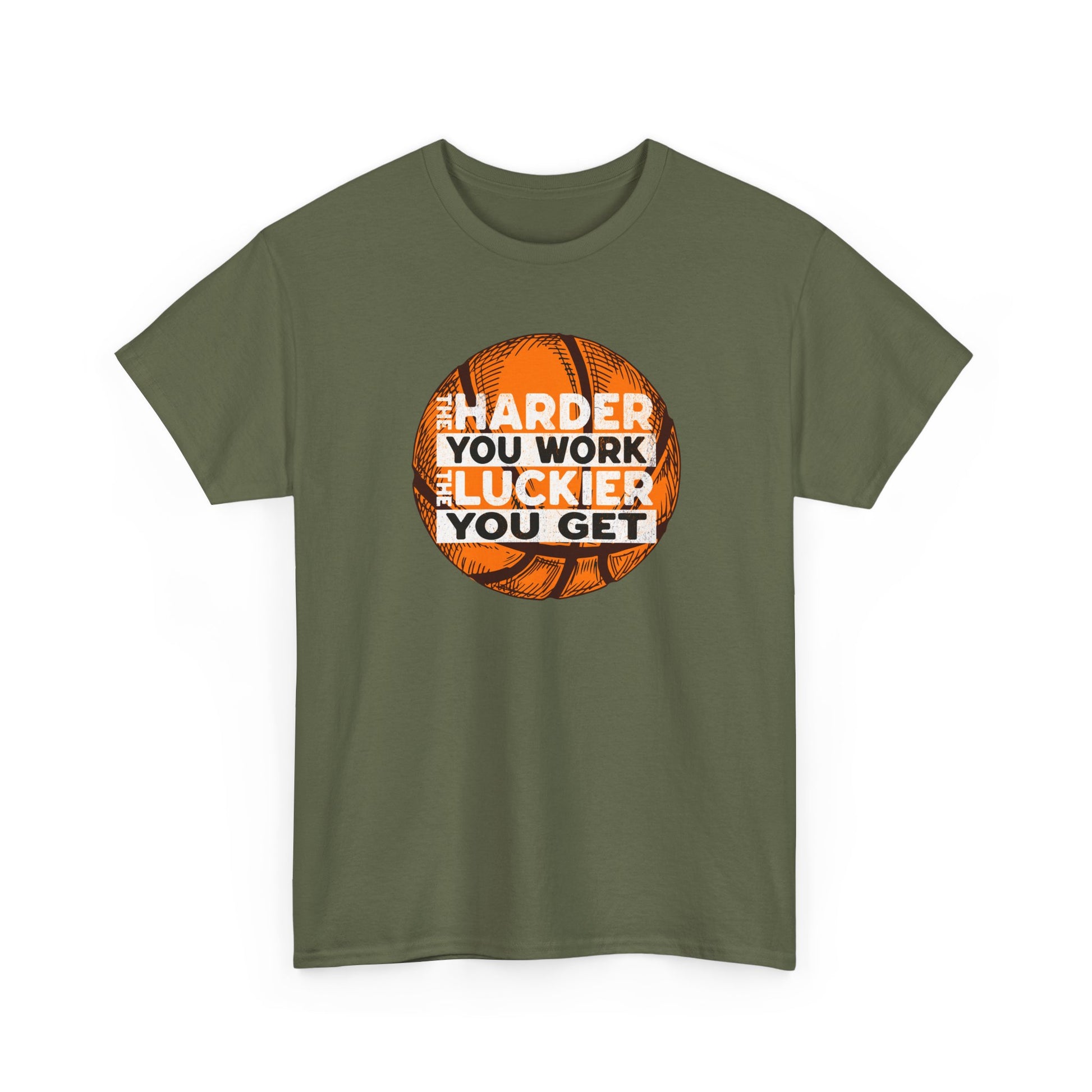 Harder You Work, Luckier You Get Basketball Tee | Unisex Heavy Cotton T-Shirt
